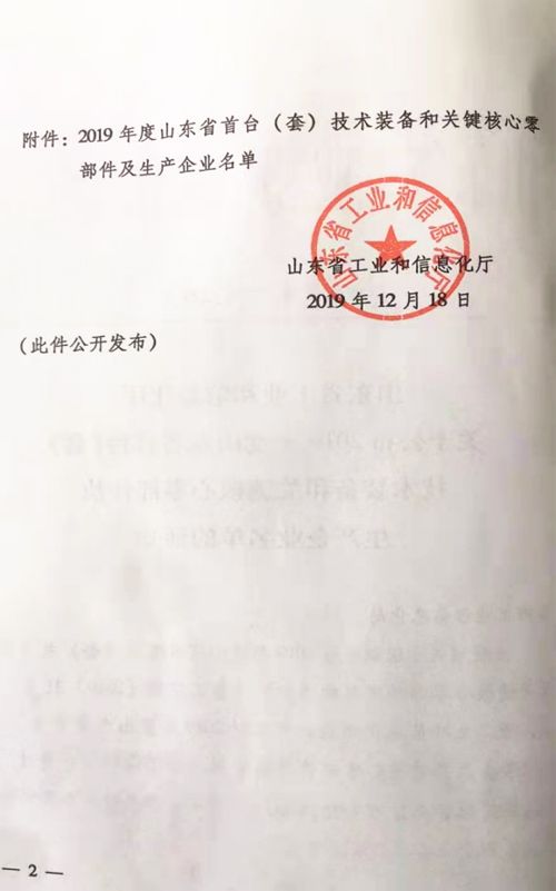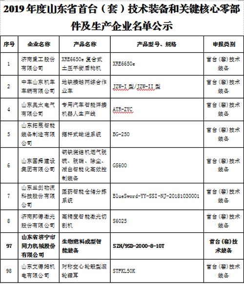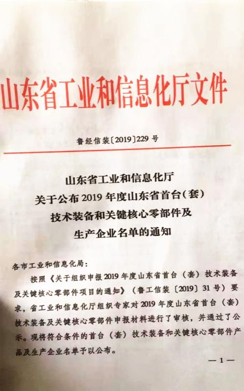 公司納入山東省首臺套生產企業名單