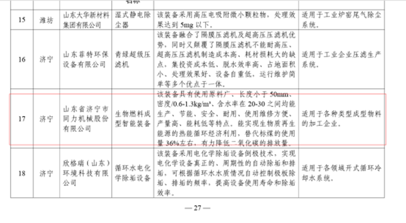 關于公布《山東省工業領域先進節水節能環保技術裝備推廣目錄》的通知